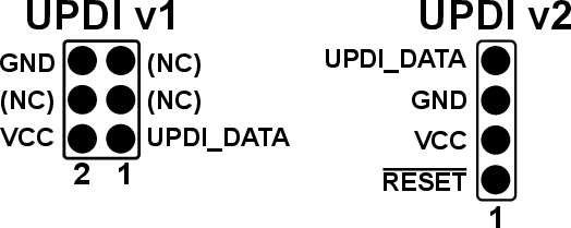 La série tinyAVR 1 se programme via UPDI, voici les deux brochages recommandés / standard pour la programmation in-circuit.